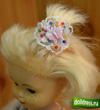 Взяв кружево пошире, можно сделать такую заколочку для себя