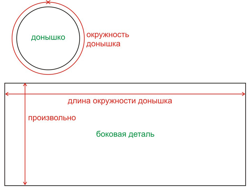 1. Наложи выкройку на ткань с изнанки и обведи. По краю круглой детали прибавь 0,5см на шов. На прямоугольной детали вдоль одной из длинных сторон прибавь 1см на подгибку, вдоль остальных сторон – по 0,5 см на шов. Вырежи.2. Если ткань сильно сыплется, то обработай все срезы.