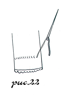 13. Немного выше нижнего края рукава пришей мелкими поперечными стежками свёрнутый колечком кусочек тонкой резинки, чтобы получился “фонарик” (рис. 22).