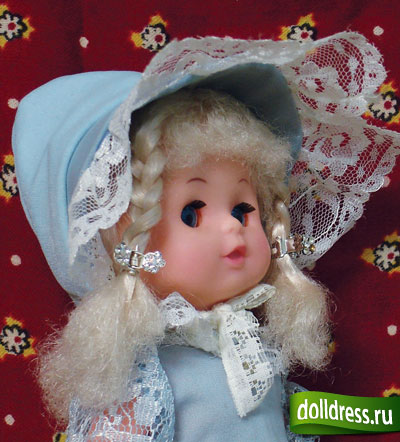 5. Возьми кусок атласной ленты или нарядной тесьмы такой длины, как обхват шеи плюс завязочки. Сложи ленточку пополам вдоль изнанка к изнанке и приложи к нижнему срезу капора так, чтобы совпали середина ленточки и донышка, а срез капора оказался внутри сгиба ленточки. Прошей, следя чтобы ленточка была прошита с обеих сторон.