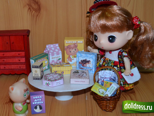 Все предметы в магазине рассчитаны на кукол ростом 20-30 см, но их можно увеличить или уменьшить до нужного размера (не рекомендуется уменьшать только самые маленькие коробки – их тогда сложно будет клеить).