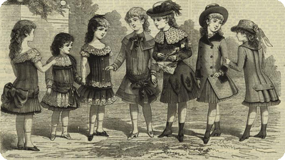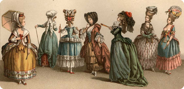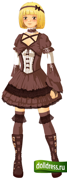 более сдержанная цветовая гамма по сравнению с описанными выше – красные, синие, зелёные, бежевые тона; более строгий покрой, меньше рюшей и кружев, в целом более взрослый образ.